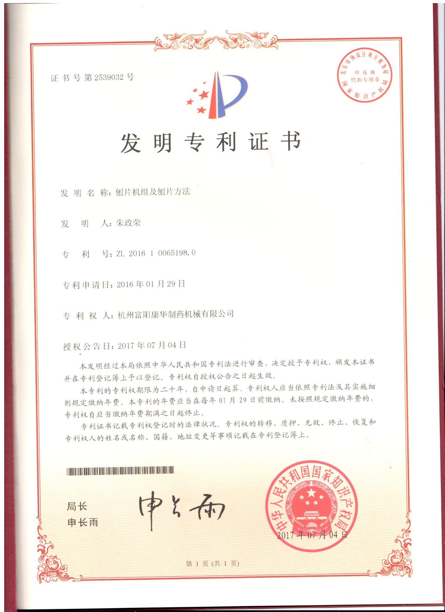 喜報!祝賀我司又獲得一項國家發明專利授權...